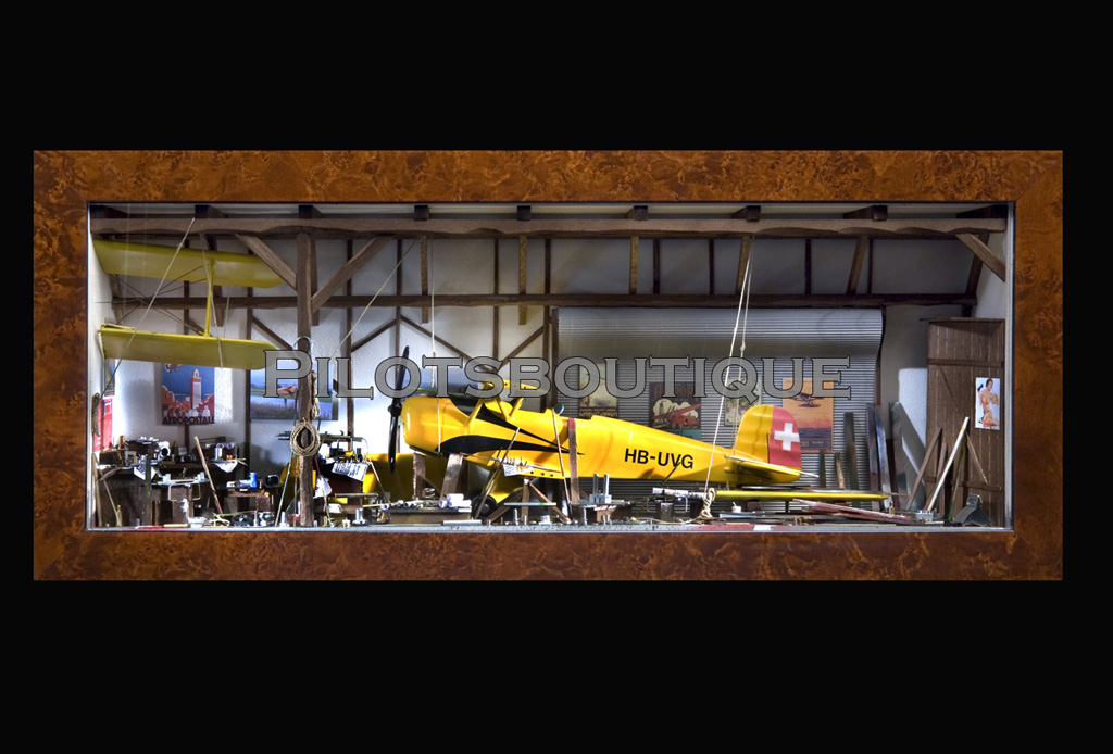 Lassen Sie Ihren persönlichen Hangar fertigen (Aufpreis von Fr. 200.--). Wählen Sie Ihr Wunschflugzeug, zum Beispiel das eigene, oder dasjenige, welches sie am liebsten fliegen. In den richtigen Farben bemalt, mit der gewünschten Immatrikulation versehen (so realitätsnah wie möglich. Abweichungen sind möglich). An der Wand hängen Bilder Ihres Flugzeuges, mit Ihnen am Steuerknüppel, oder von Ihrem Heimatflugplatz. So machen Sie den Hangar mit einer individuellen Note zu Ihrem persönlichen Hangar. Übrigens: Mit einem Hangar als Geschenk werden Sie einem Freund oder geliebten Menschen eine unvergessliche Freude bereiten.Personalisieren